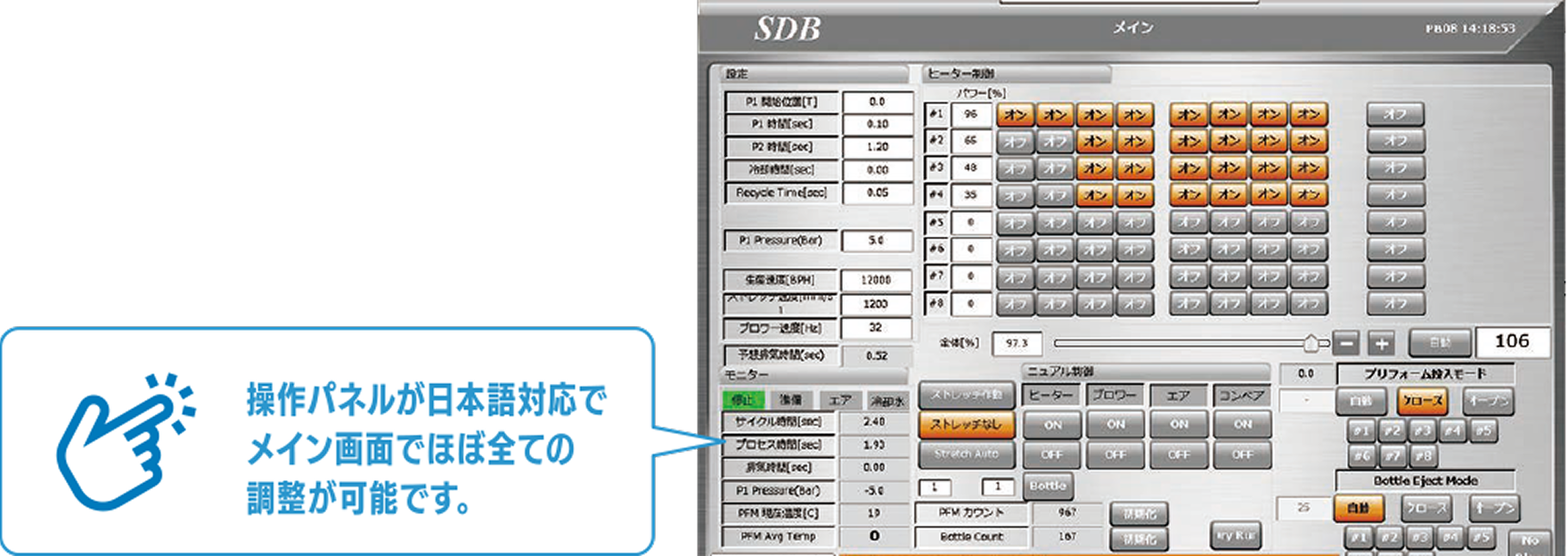 - プリフォームの温度チェックによる加熱不良自動イジェクト機能
