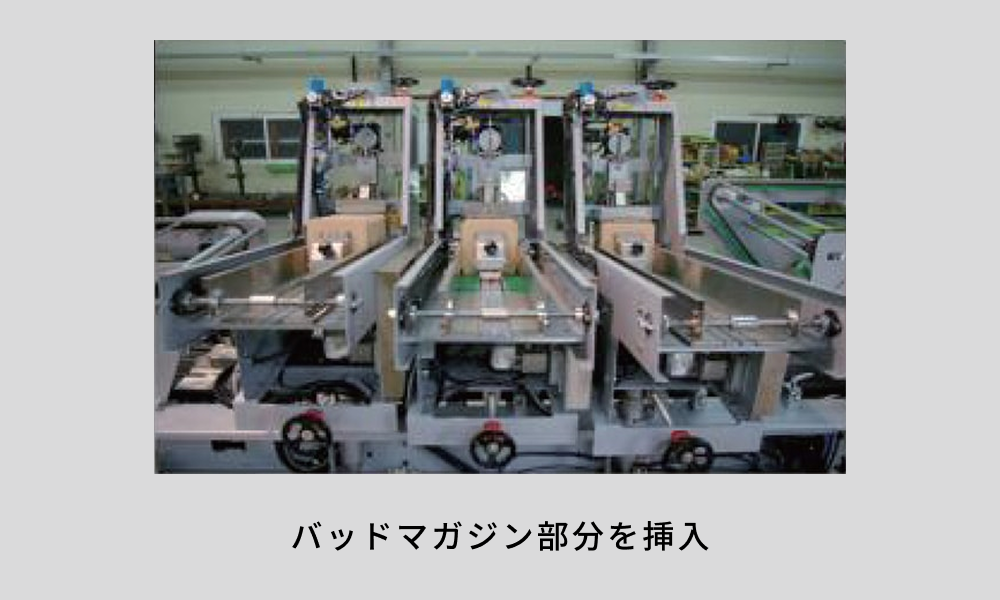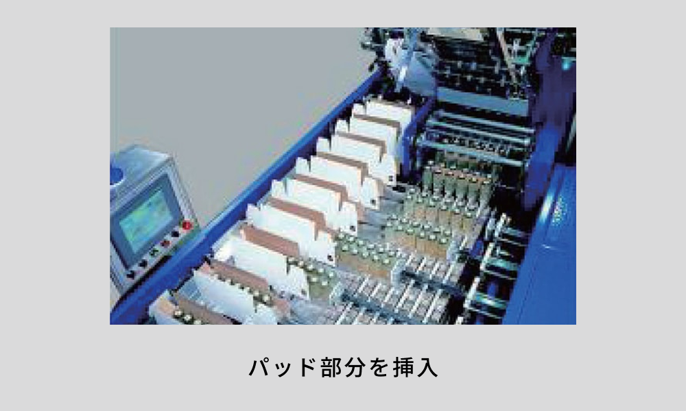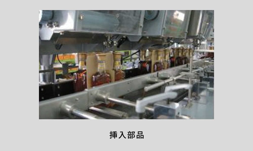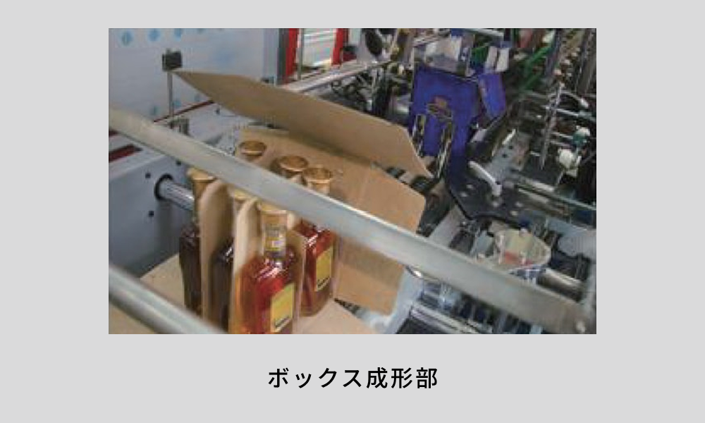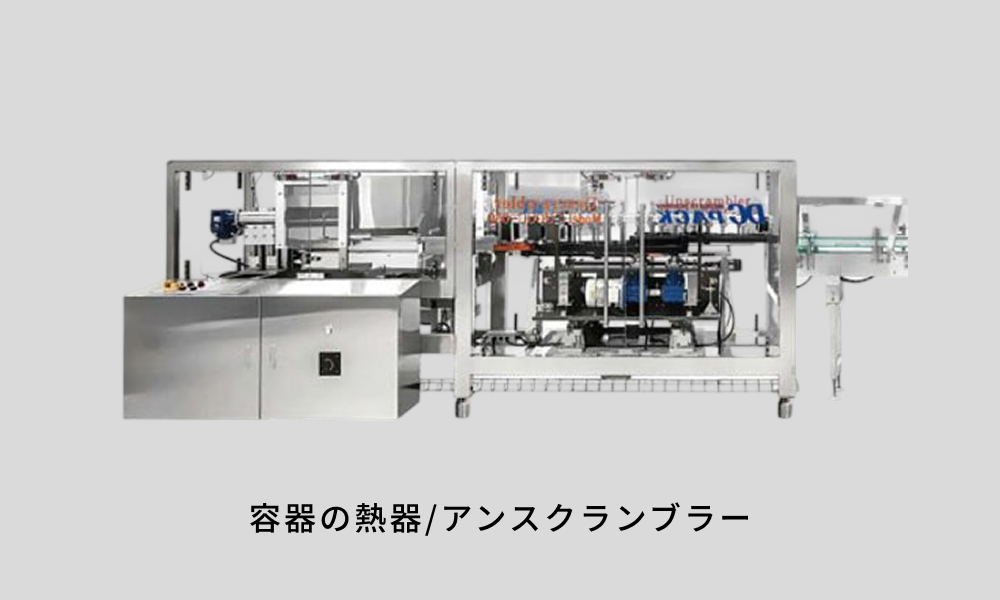 ガラス、缶、PETなどに可能で、特にガラス容器にはクロスインサートパッドを投入して生産が可能です。